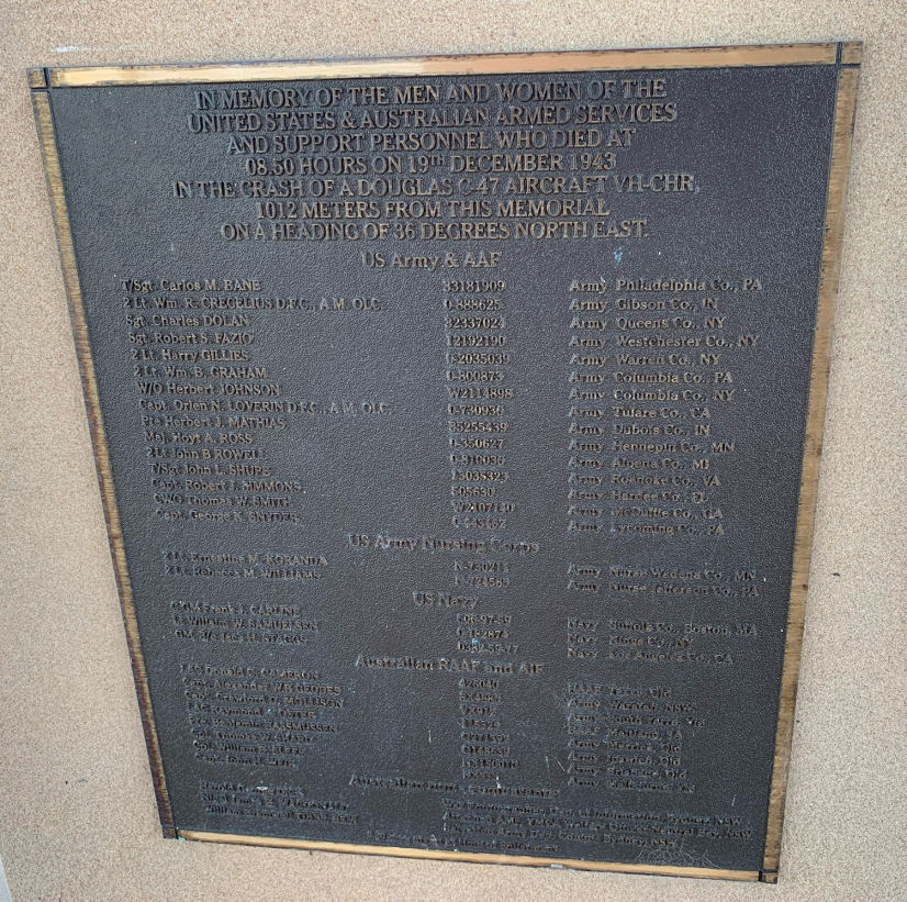 Another attendee at the Ceremony was Peter Murray from Townsville who is organising a memorial to be erected in the Townsville area to commemorate the tragic loss of 27 American lives in the crash of another C-47 Dakota into Cleveland Bay off Townsville on 7 August 1943. This is currently Australia's fifth worst air disaster.