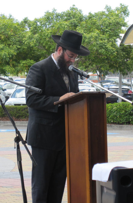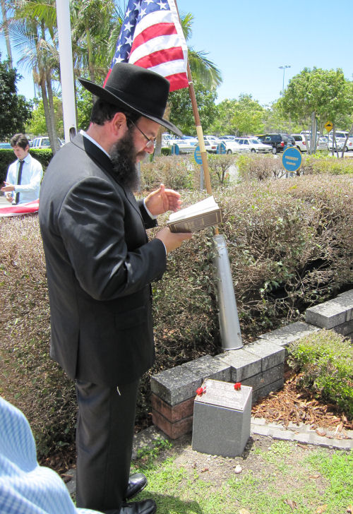 Rabbi Levi Jaffe praying over the Memorial Plaque