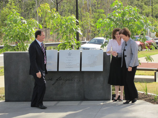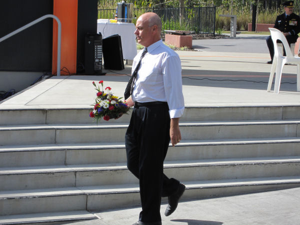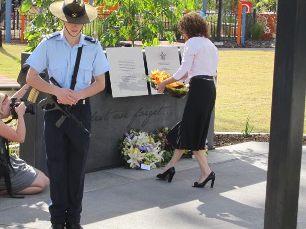 Mayor Paul Pisasale, Mayor of Ipswich, Councillor Sheila Ireland laying a wreath