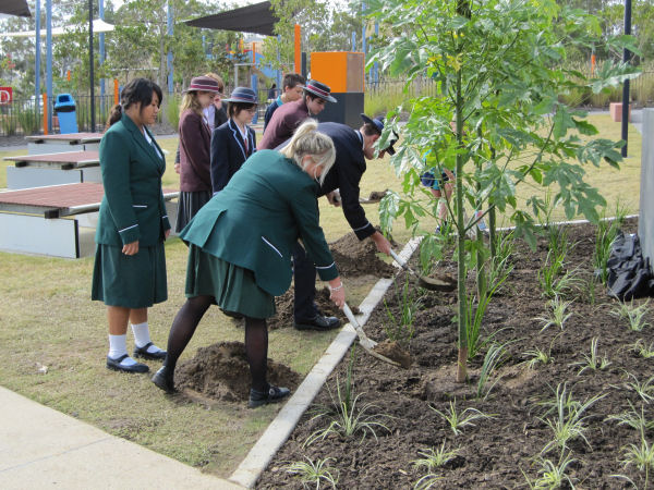 Ms Jo-Ann Miller, MP, State Member for Bundamba and school captains of Woodcrest State College