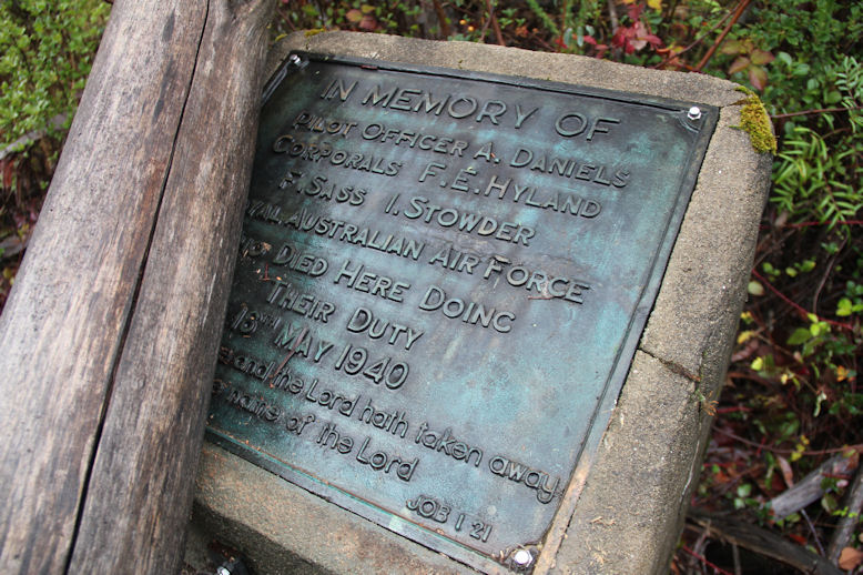 Three Ansons left Point Cook at 1145 on 16 May 1940, enroute from Pearce to Camden, callsigns 8BNE, 8BNF and 8BNA. BNE eventually reached Cootamundra, but BNF and BNA attempted to return to Point Cook. BNA went missing and was found to have crashed on Mount Torbreck, near Eildon. The crew were PO A.A. Daniel, Cpl I.L Stowdor, Cpl F.E. Hyland and Cpl H.F. Sass. The aircraft was A4-4 of 14 Squadron RAAF.