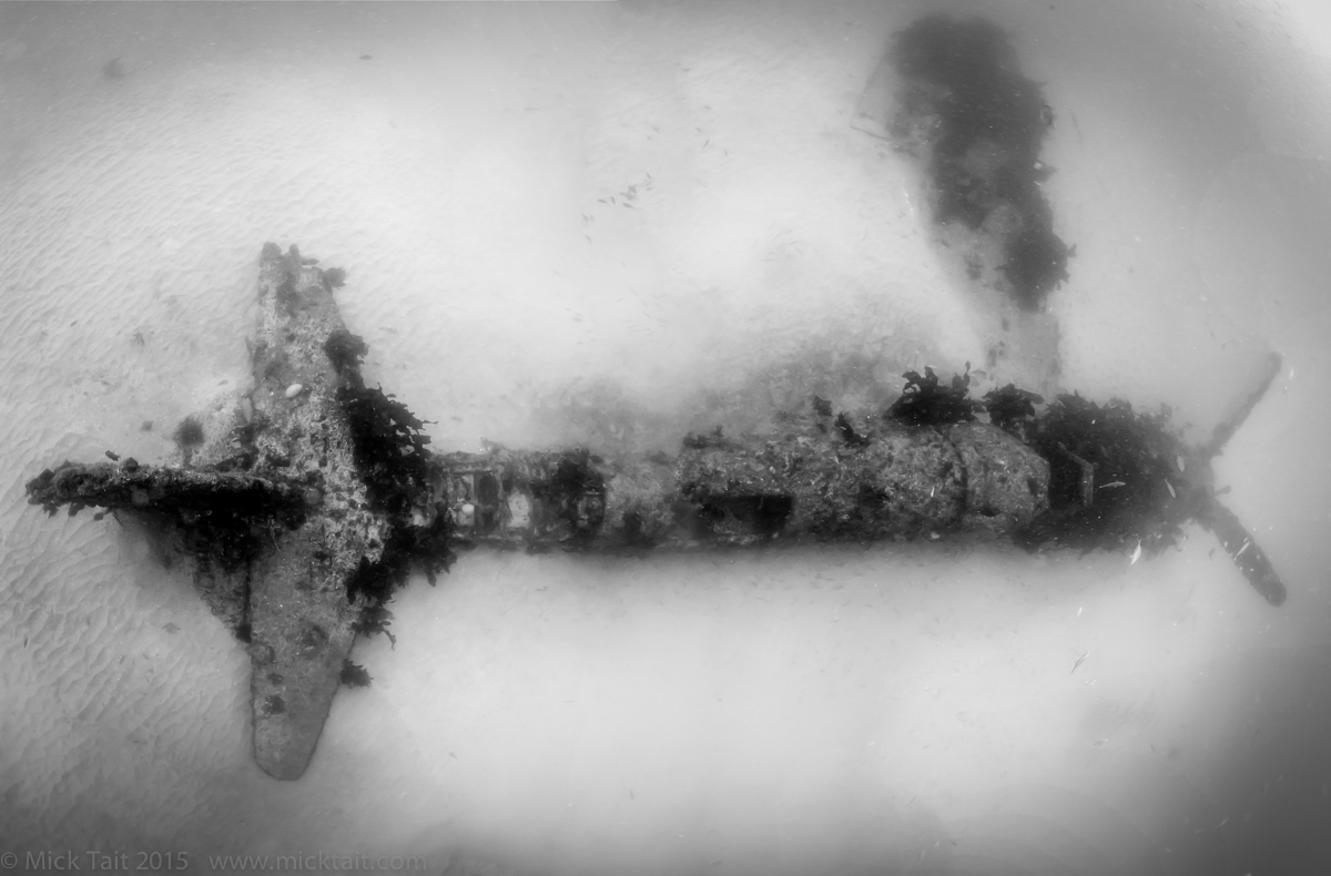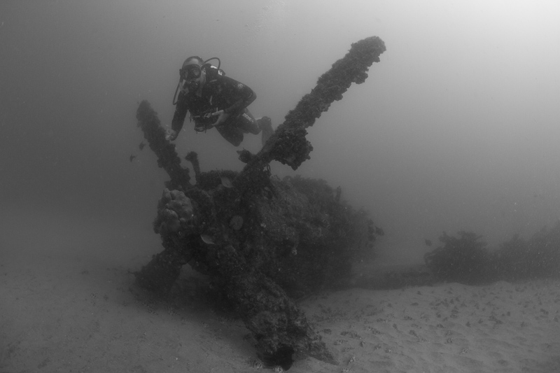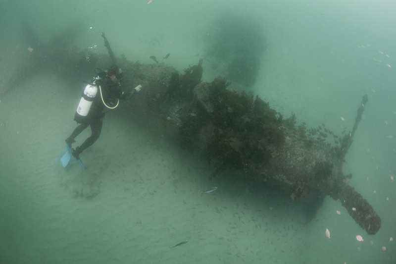 Diver and the remains of Fairey Firefly VX 381