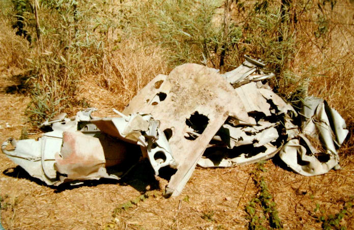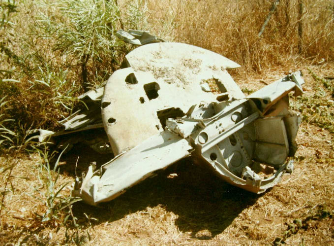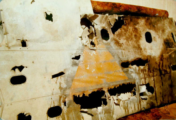 Tail wreckage which was first found on a ridge in 1977 by Stan Gajda
