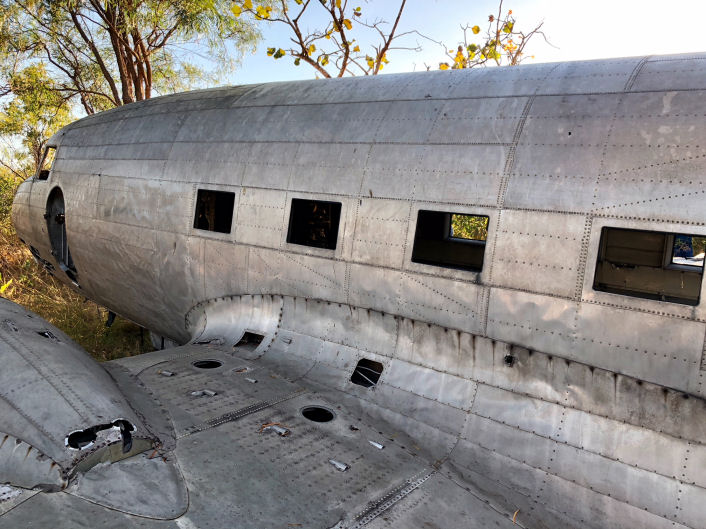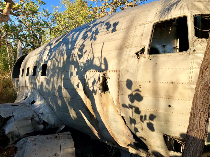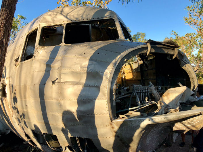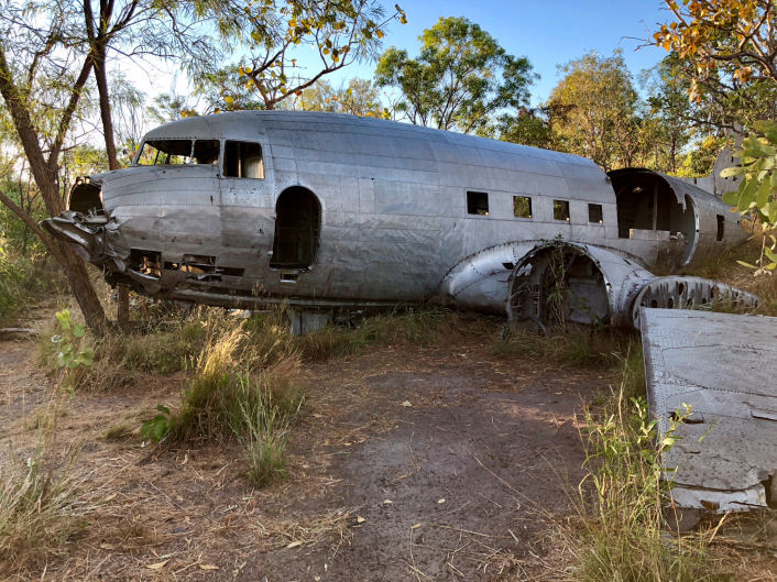 Wreckage of a USAAF C-53-D-O Douglas DC-3 #41-20066 (VH-CDW), of the 21st Troop Carrier Squadron, 374th Troop Carrier Group, was located on a beach near Cape Londonderry, Vansittart Bay, about 400 miles north east of Broome. It went missing on 26 February 1942. It was on a Ferry flight from Perth to Darwin. They were meant to land at Broome but flew past Broome in the dark and ran out of fuel. They made a wheels up forced landing on the coastline. It landed in soft ground and tipped onto its nose. The reasonably intact wreck is still there today. It was located only about 5.55 miles south west of the future site of the secret Truscott Airfield.