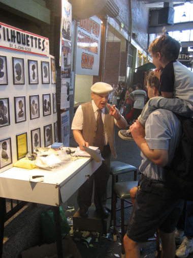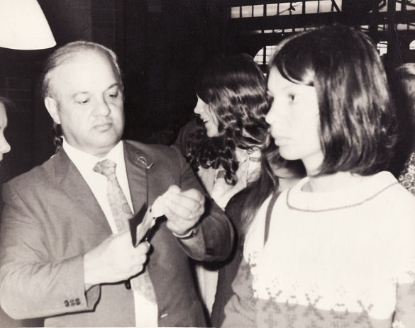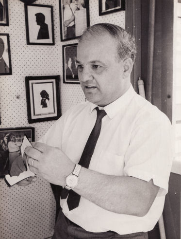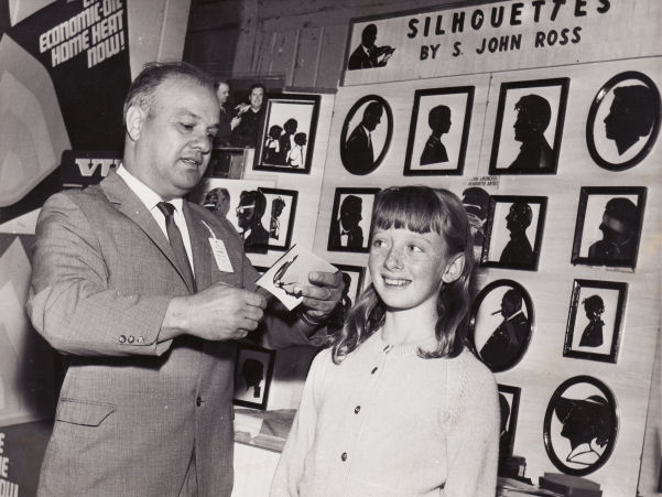 S. John Ross in 1973 cutting a silhouette for a young unidentified girl (is this you? - please contact me)