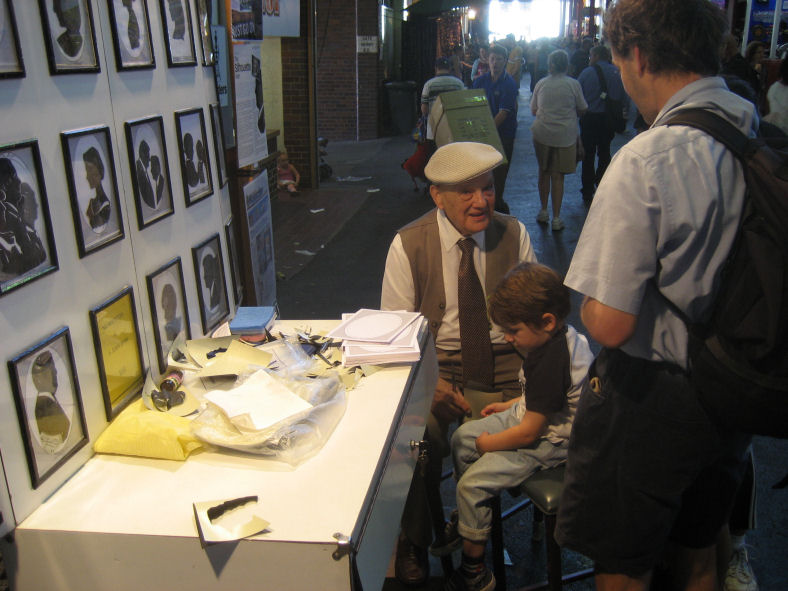 "That’s sad news. I have one of his works of art (of myself) somewhere. I spoke to him at the Townsville Show about 3 years ago – and I think he said it was his 50th consecutive year he had been there. We had quite a chat about how things had changed over that time. I think he said that the Shows used to provide him space at no cost. But by 2005 his little stand was costing him $600.00. Then with travel expenses and his accommodation (he used Hotels) he had to do a lot of silhouettes to even look like cutting square. It had become just a way of life for him – just for his enjoyment of travel, talking to people and his work – that kept him going."