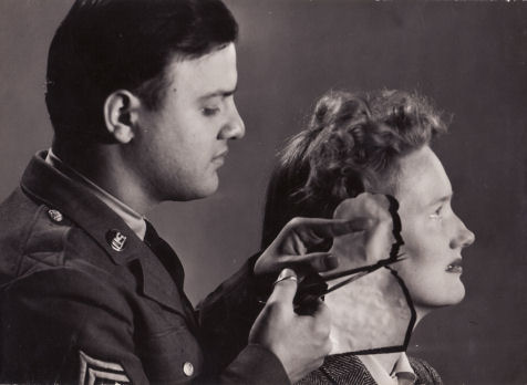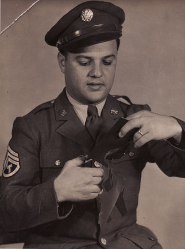 S. John Ross cutting a silhouette in 1943 in his US Army uniform