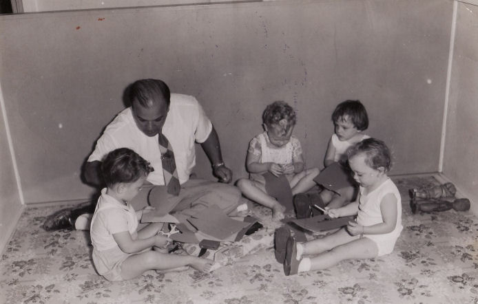 S. John Ross in 1974 cutting a silhouette for another young unidentified girl (is this you? - please contact me)