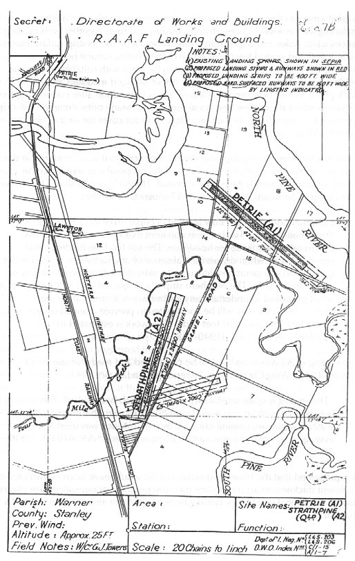 There were three dispersed runways in the Petrie-Strathpine areas. They were the main fighter fields for the Brisbane area defence.