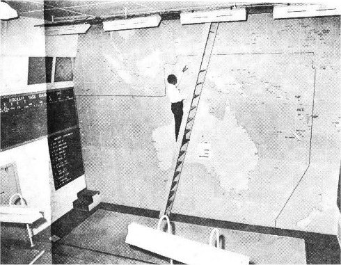S/Ldr Buscombe and the Adjutant visited 2 FSHQ at New Lambton on 10 October 1942 to establish liaison and exchange ideas. Air Vice Marshall Bostock visited 1 FSHQ and inspected the Operations Room and the quarters. Corporal Brown of D.S.D., Air Board arrived on 27 October 1942 to construct a new map for the large plotting table. In his monthly October 1942 report S/Ldr Buscombe reported that accommodation facilities left much to be desired and liaison arrangements with the Royal Australian Navy were unsatisfactory.