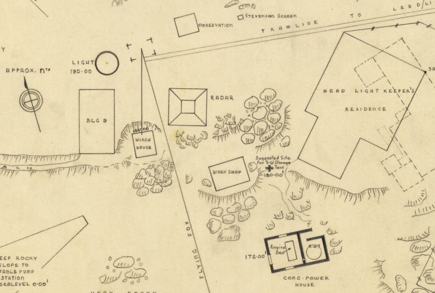 location of the WW2 Radar Aerial and Power House building are shown. The Observation