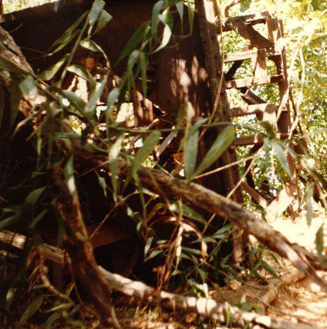 While holidaying on the island in 1984 Geoff Russell walked to the site of the former No. 27 Radar RAAF and was able to photograph the rather deteriorated remains of the radar unit. Geoff was told that the site suffered this damage during a cyclone. The site is an easy walk from the resort to the top of the peak on the island.