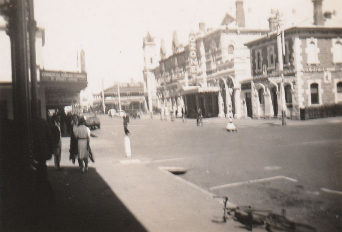 Town Hall Clock are visible down the end of the street, Spring 1941 (JRL)