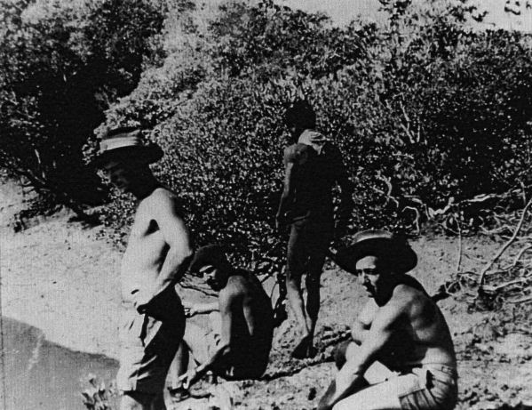 L to R at front:- Harry ?, unknown native, Jack Savage, Dick Mann and Jack