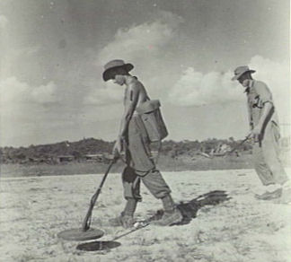 Unit RAAF looking for mines around an airfield at Tarakan, Borneo in 1945.