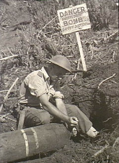 Ian Jenkins contacted me on 22 September 2009 and advised that he had noticed this web page on RAAF Bomb Disposal Units, and remembered that he had written a profile on the subject of Bomb Disposal Units based on Corporal Neville Young, an RAAF Armourer, who had embarked on the first RAAF Bomb Disposal Course at Point Cook (Vic) in April 1942, and served on RAAF Bomb Disposal duties at Darwin and Port Moresby.