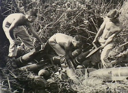 When the RAAF were short of bombs around Wewak area they resorted to using Jap bombs. It was not altogether a successful exercise because the Jap bombs were not easily adaptable to the Australian planes, and there were problems with the fuses not operating on impact in some cases.