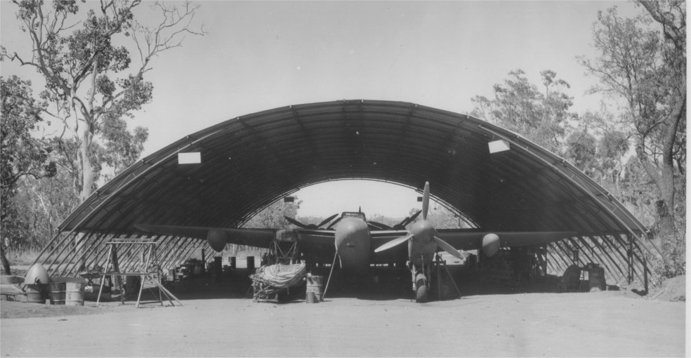 Mosquito in hangar at Coomalie Creek airfield, 6 August 1945