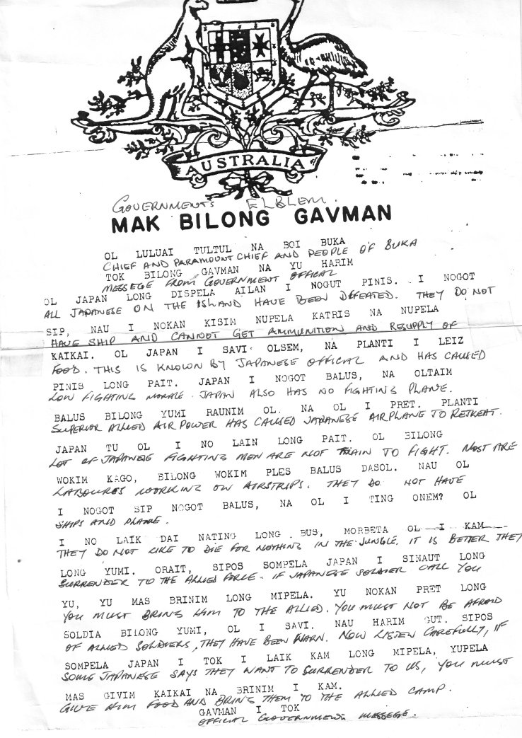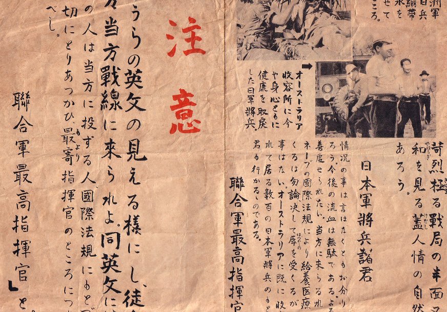 Propaganda leaflets dropped by 8 Squadron while based at Aitape