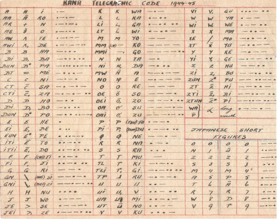 Katakana Code chart prepared by LAC Percival Clarence "Clarry" Millar (88725) RAAF