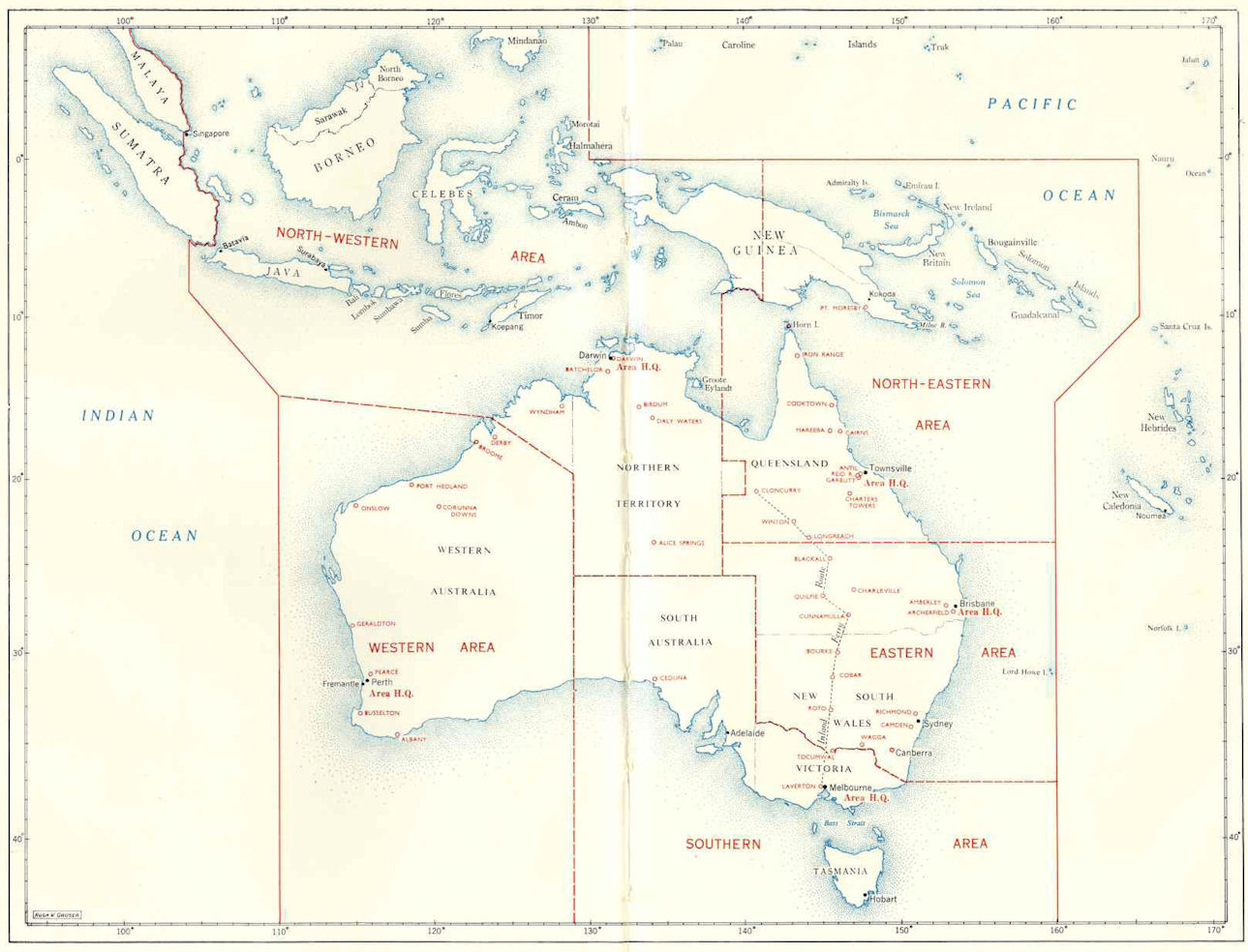 The territorial boundaries of the operational Areas were defined as detailed in Annex No. 1 to A.A.F. General Order No. 11.4 Jun 42