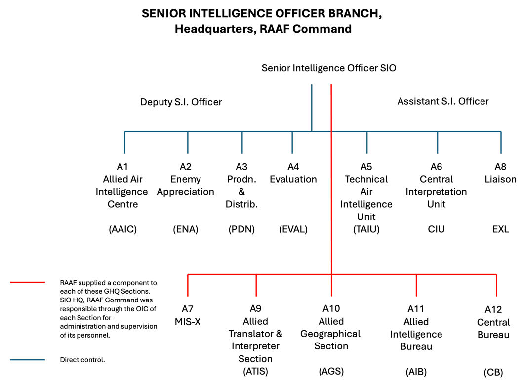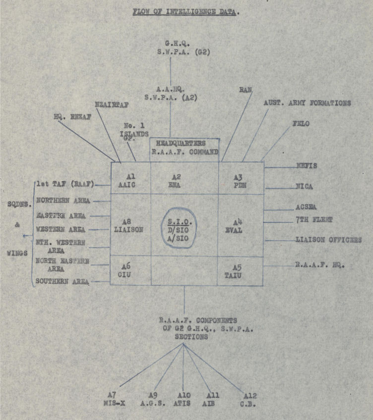 The Senior Intelligence Officer, Headquarters, RAAF Command, was responsible to the Air Officer Commanding, RAAF Command, for the collection, in collaboration with other Australian, and Allied Services, of information concerning:-