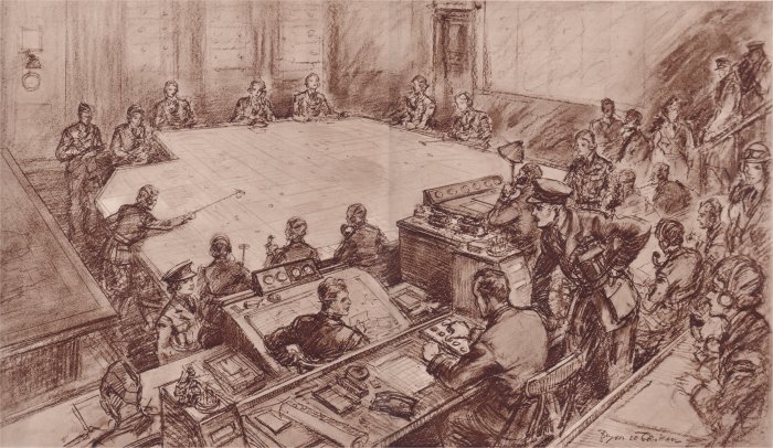 The Chief Controller sat in the centre of one end of the room on a large raised rostrum. He received reports direct from the fighter pilots in the air. He ensured that the best advantage was obtained and every tactical opportunity seized.