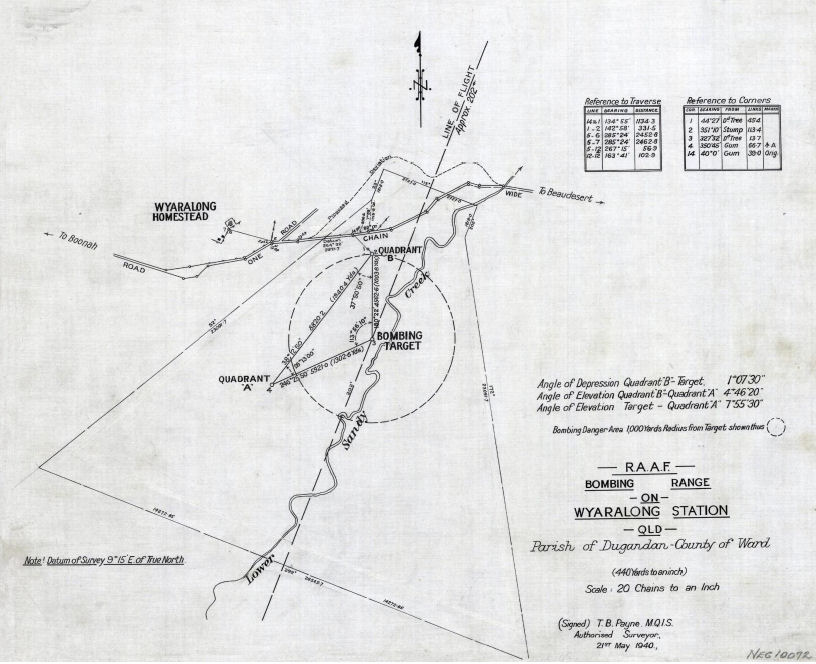 Part of a property called "Wyaralong" was used as a Bombing and Gunnery Range by the RAAF during WWII. It was located about 20 miles SSE of Goolman airfield. "Wyaralong" was owned by the Philp family.