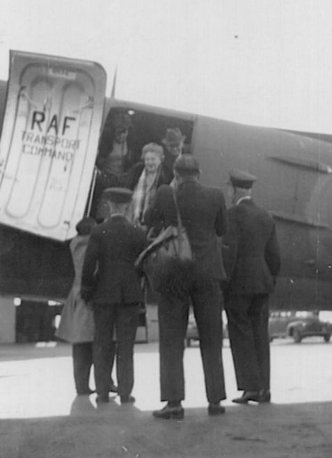 Gracie Fields exiting a 238 Squadron aircraft at Parafield