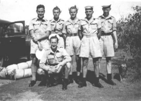 to their ship HMS Lothian. L to R:- Les Jones, Ron Hunt, "Sam" Samuels, "