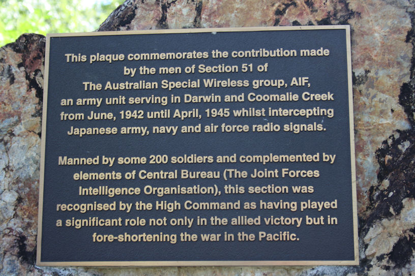 Commemorative Sign at Coomalie Creek for 51 Special Wireless Group