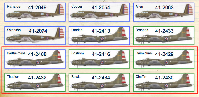 The following twelve B-17 Flying Fortresses arrived over Hawaii from California on the morning of 7 December 1941. See the diagram below.