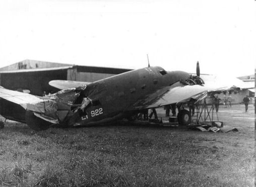 Lodestar LT-922 after being hit by DC-3 VH-ACB in 1942