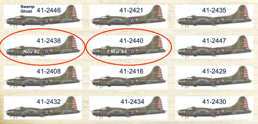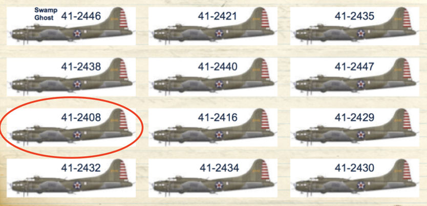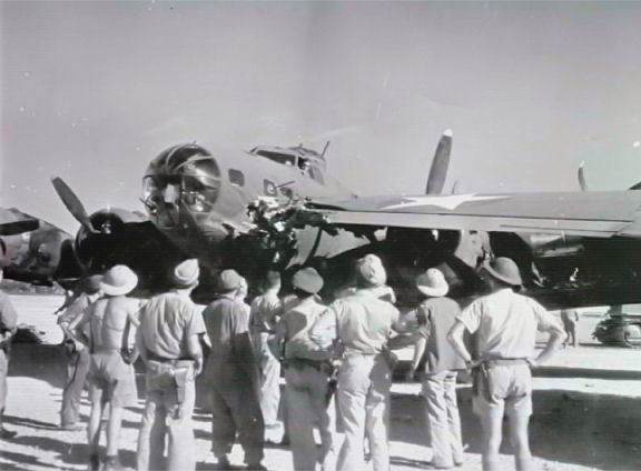 Though there appeared to be no damage to “San Antonio Rose”, it was felt that the engine could have been stressed & might not last the long mission. The B-17 was scratched from the mission to Rabaul. Its wingtip was used to repair Rawls' B-17. From then on, “San Antonio Rose” #41-2416 became a source of spare parts and was eventually dismantled. DuBose’s B-17 had water in its fuel lines. So they were now down to six aircraft.