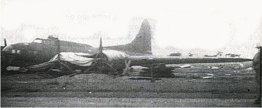As their B-17 stopped moving at the eastern boundary of the dispersal area, Barthelmess and his crew quickly exited their B-17 and met up with the crews of Ted Landon, Bruce Allen and Earl J. Cooper. They could see the burning remains of Swenson's B-17 beside the runway. Lee Embree took some photos of the damage they could see from their position.