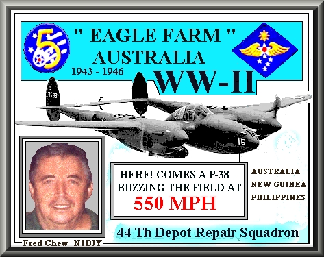 The 44th Depot Repair Squadron went From Eagle Farm airfield to Finschaffen in New Guinea. Fred Chew told me that they constructed a major Combat Overhaul & Modification Base at Finschaffen. They even tried to install a 75 MM Cannon in a P-38 Lightning. Fred Chew was a Graduate of "Embry Riddle School of Aviation" and ran a Flying school in 1946. He had 14 Aircraft and had been a pilot ever since.