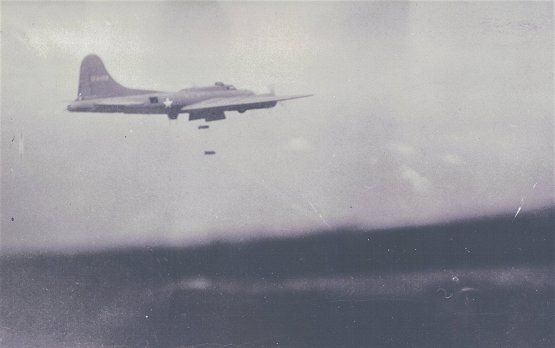 Don Clark on left, flying a B-17 Flying Fortress
