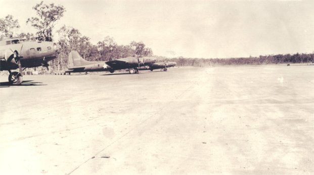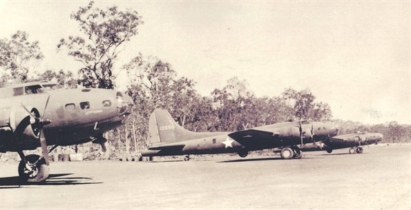 B-17 Flying Fortresses at Mareeba airfield. 2nd aircraft from the left is #41-2695