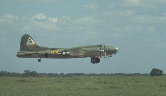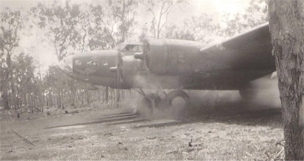 B-17 Flying Fortress taking off from Mareeba airfield for a mission to New Guinea