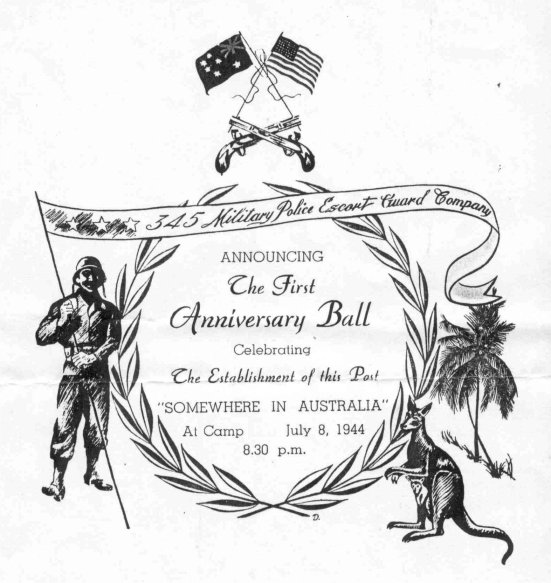 Captain Walter A. Liszki, of the 738th Military Police Battalion was assigned on Temporary Duties as the Post Adjutant on 15 August 1943. He was relived of Temporary Duties and reassigned to the 345th MPEG Coy on 9 September 1943. Their first Chaplain was assigned en route to join the 345th MPEG Coy on 9 September 1943. On 15 September 1943 the guards of the 345th MPEG Coy experienced their first escape when prisoners Heck, Garrison and Daley escaped from a work detail while trucking supplies from Brisbane. Another three prisoners escaped while they were participating in a baseball game on the parade ground.