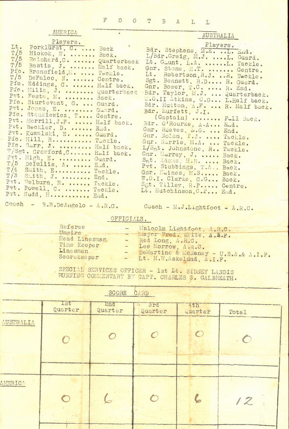 Thanksgiving Day 25 November 1943 Touch Football match
