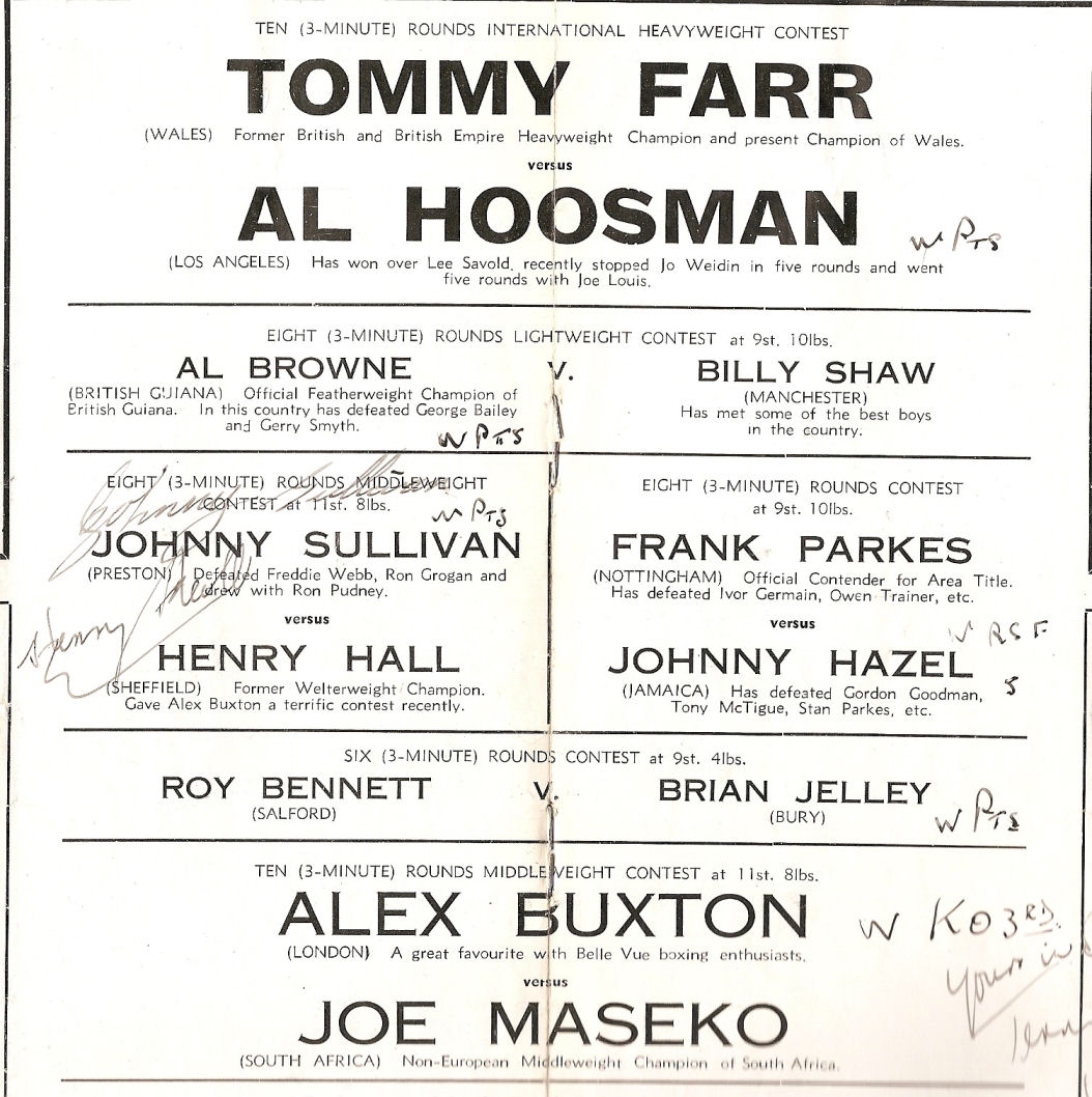 That night in Manchester Al Hoosman beat Farr on points although Farr reversed the result in a later fight. This along with Hoosman's victories over Lee Savold and Joe Weiden suggest that Al Hoosman was a cut above the average heavyweight of the day.