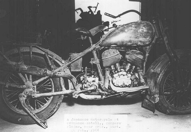 Captured Japanese motorcycle at the Coopers Plains Depot on 28 February 1944