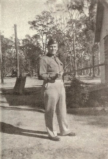 "We had a quite busy schedule at OCS there, relieved by dates with American nurses of the 28th Surgical Unit located in a large house on stilts near 6th Army Headquarters and Saturday night dances at Lennon Hotel in Brisbane with music by the 32nd Division Band. Other remembrances were of the thousands of mosquitoes in my little wall tent. We had to sleep in mosquito bars. We did have hot water in outdoor showers."