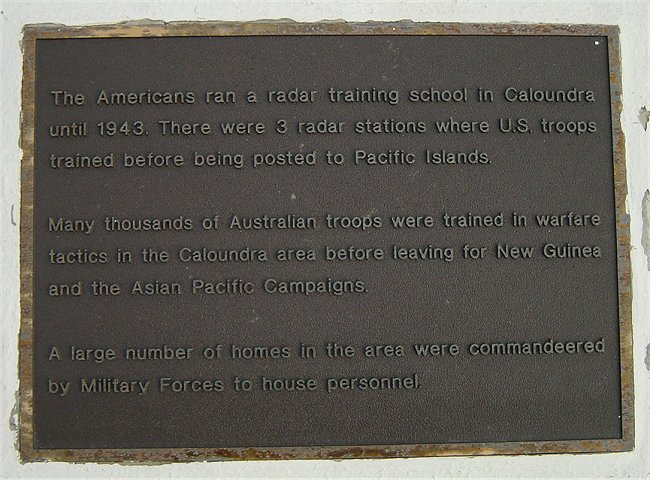 The Americans ran a radar training school in Caloundra on Queensland's Sunshine Coast until 1943. There were three radar stations where U.S. troops trained before being posted to Pacific Islands.