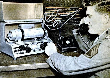Each black and white picture, map or page of text took seven minutes to transmit. Towards the end of the war the first colour photograph was transmitted. It was a photo of President Harry S. Truman, Prime Minister Clement R. Atlee and Marshall Joseph Stalin at the Potsdam conference.