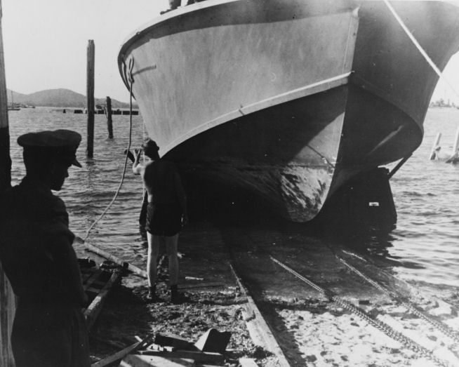 PT 136 undocked and returned to Cairns wharf. PT 135 dry-docked for a bottom overhaul. PT 138 was ordered to Johnson's Yard to make preparations for docking. A Captain's Inspection was held for all PT Boats at the Cairns dock.4 April 1943
